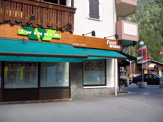 Face à la gare de départ du téléphérique, le magasin Twinner, déserté, liquide son stock de la saison