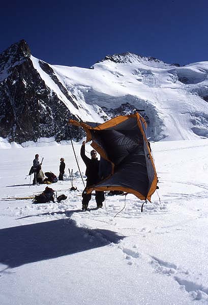 Parfois, on renoue avec la tradition du raid et du bivouac. Ici sur le glacier Blanc