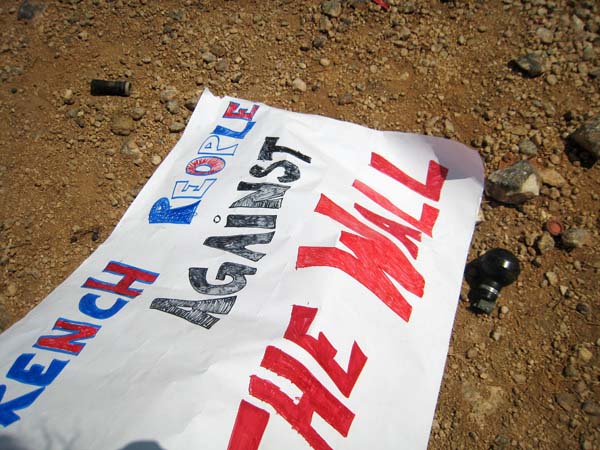 Banderolle et grenade lacrymo - manifestation hebdomadaire de Bilin - District de Ramallah,