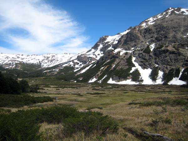 Longue marche à plat dans les marécages de Rucaco - Massif du Cerro Catedral