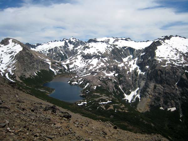 epuis la Brecha Negra, vue sur le lac et le refuge Jacob - Massif du Cerro Catedral