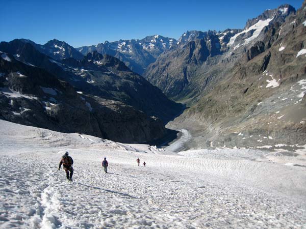 Descente sur le glacier de la Pilatte - Pilier nord-est des Bans