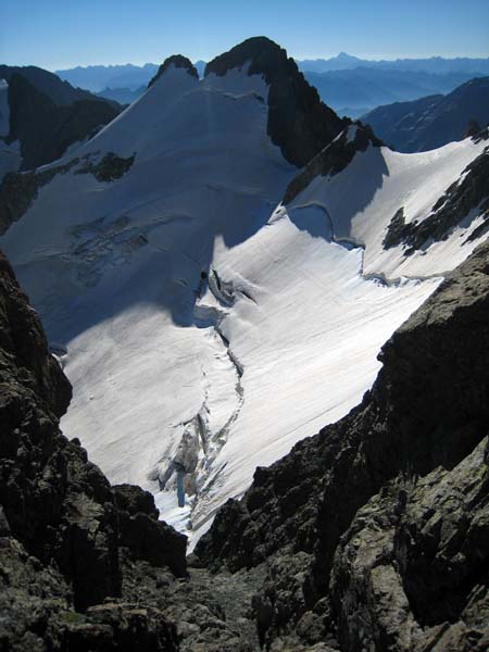 Derrière nous, la pointe et le glacier de la Pilatte - Pilier nord-est des Bans