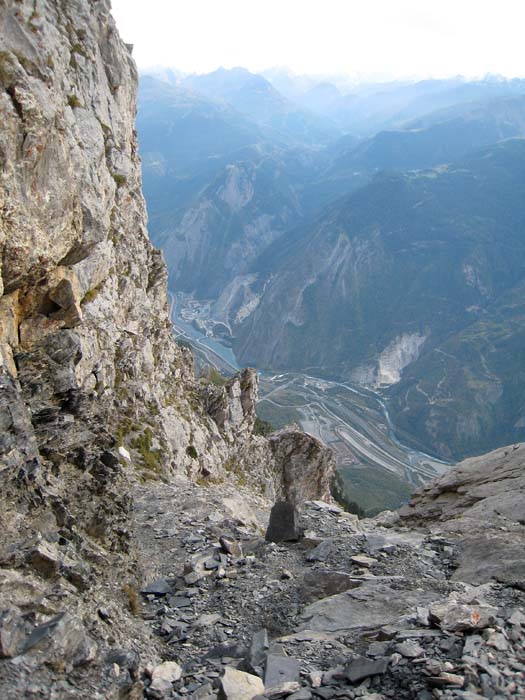 Le couloir de descente vu depuis la brèche sommitale - Trafiquants d'âmes