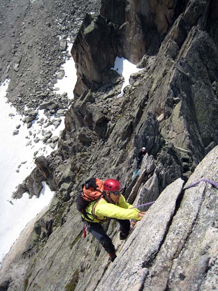 Antoine dans un des passages délicats - Traversée des Ecandies