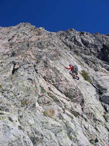 Dans la deuxième longueur, juste après le petit pas en 6a
