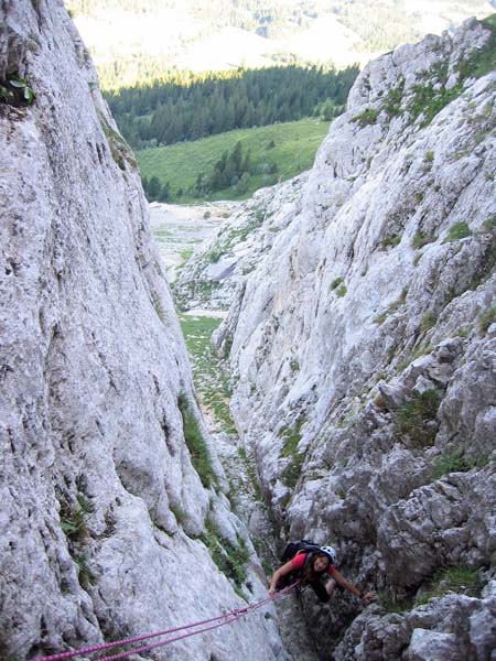 Petit passage de grimpe dans la faille menant à la Double Brèche
