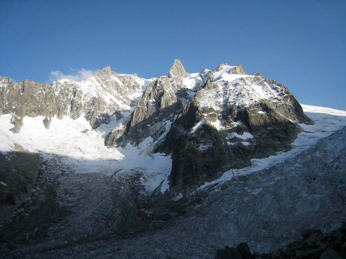 L'ensemble Dent du Géant - arête de Rochefort depuis le refuge - voie Renaudie