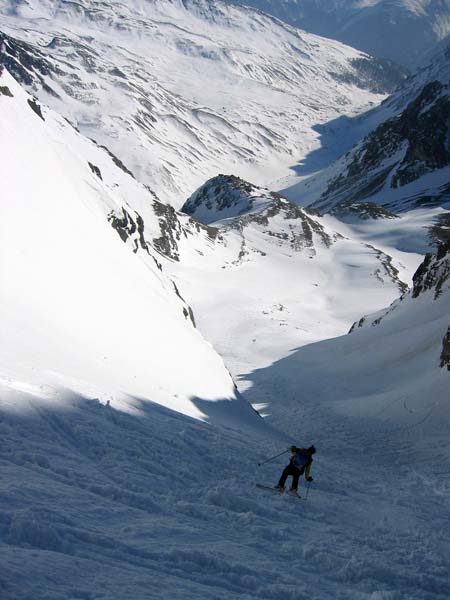 J8 : Françoise dans le couloir sud-est du Piz Buin