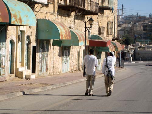 Colons juifs armés arpentant les rues d'Hébron colonisé - Cisjordanie