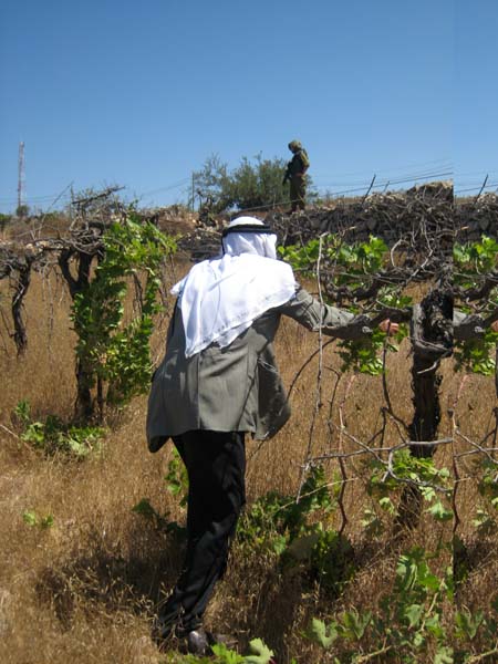 Tentative de récolte par un vieux palestinien avant l'intervention des soldats - région de Bethléem