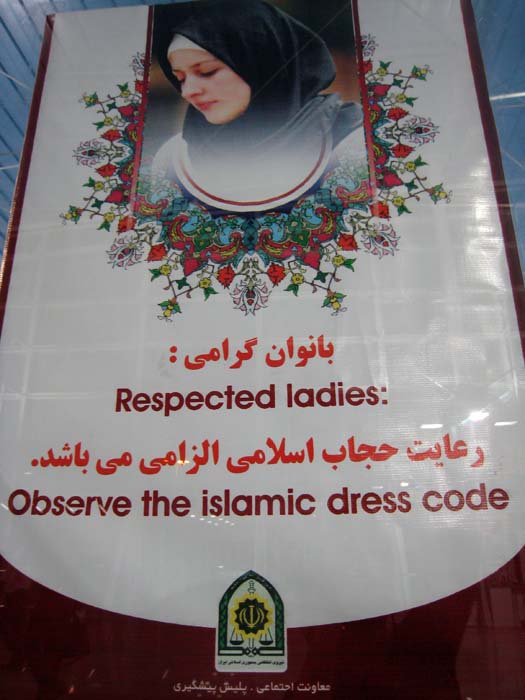 Pancarte à l'attention des femmes étrangères dans l'aéroport international Imam Khomeini ; Téhéran