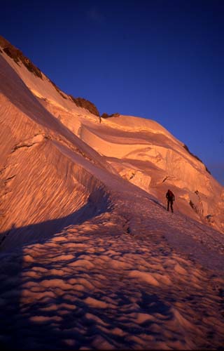 Olivier Cordeuil à l'attaque de la traversée Est-Ouest de la Barre des Ecrins