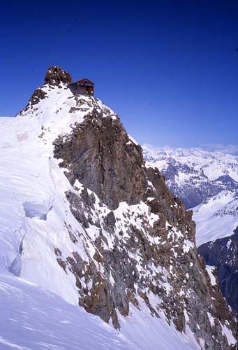 Le refuge de l'Aigle, depuis le glacier de l'Homme