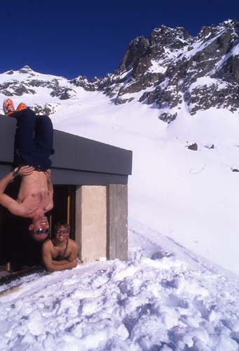 Détente au refuge de l'Olan, après une bonne séance de déneigement