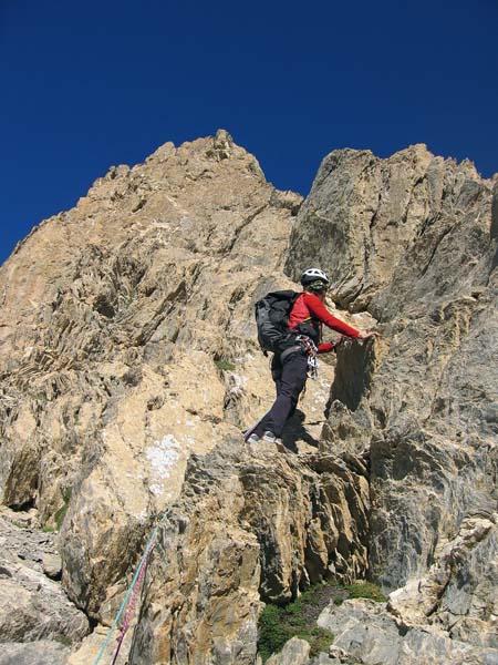 Cécile au départ de l'arête est, juste au-dessus de la brèche Nérot Vernet