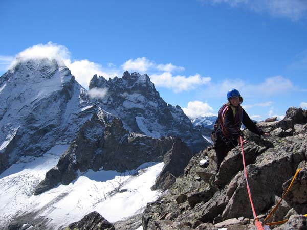 Aurélie au sommet de la pointe Emma, avec derrière la Grande Ruine