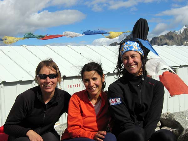Petite pause au refuge du Pavé avant la longue redecsente dans la vallée (Claire, Leï, Cécile)