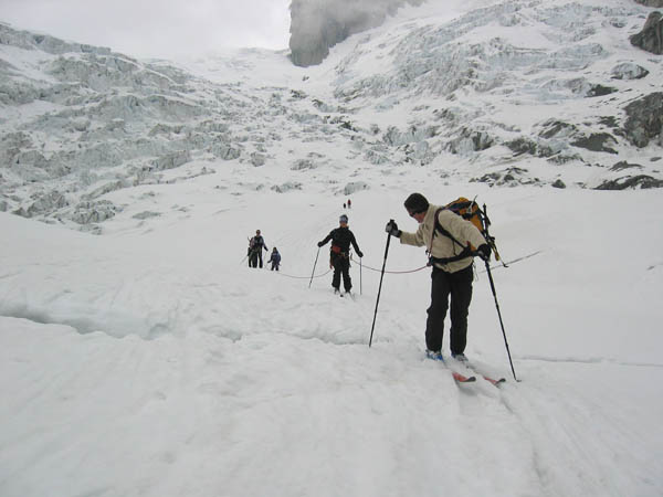 Evolution à skis et encordés sur une zone crevassée de la Vallée Blanche
